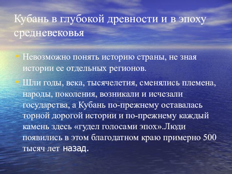 Слайд 5Кубань в глубокой древности и в эпоху средневековья