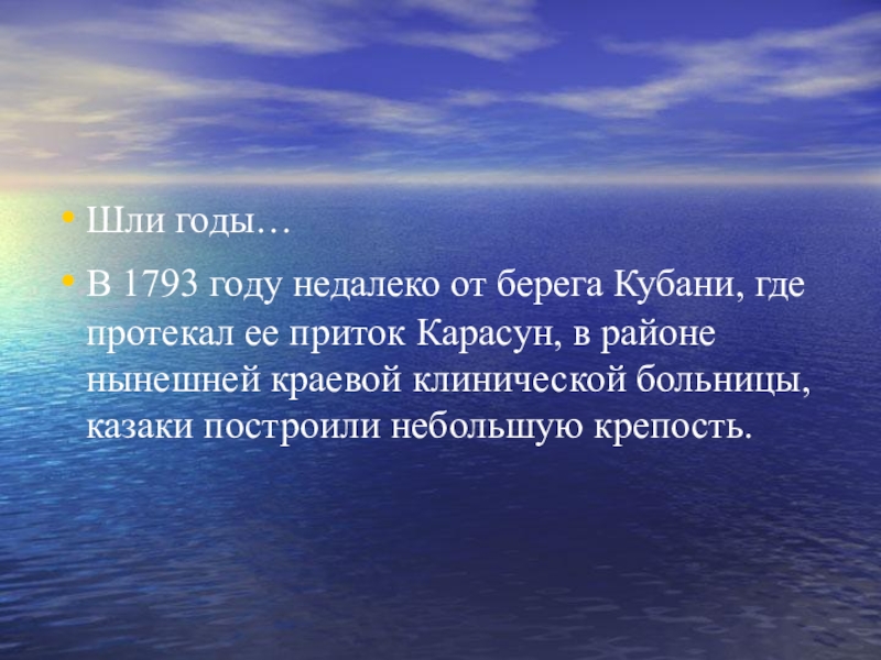 приток Карасун, в районе нынешней краевой клинической больницы, казаки построили небольшую крепость.
