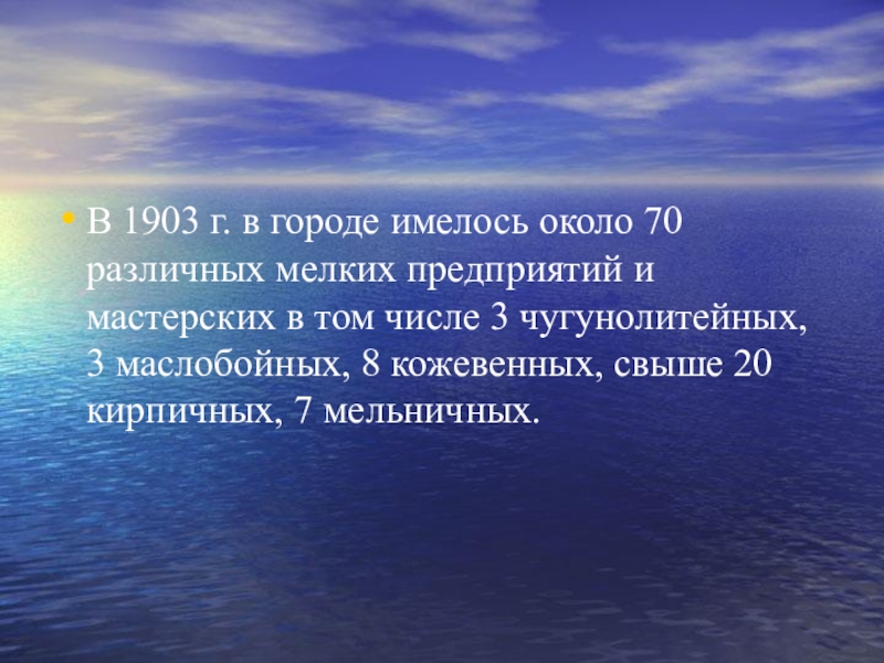 В 1903 г. в городе имелось около 70 различных мелких предприятий