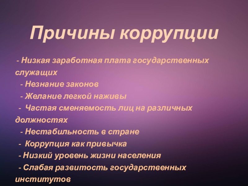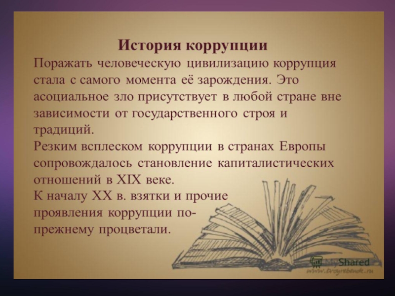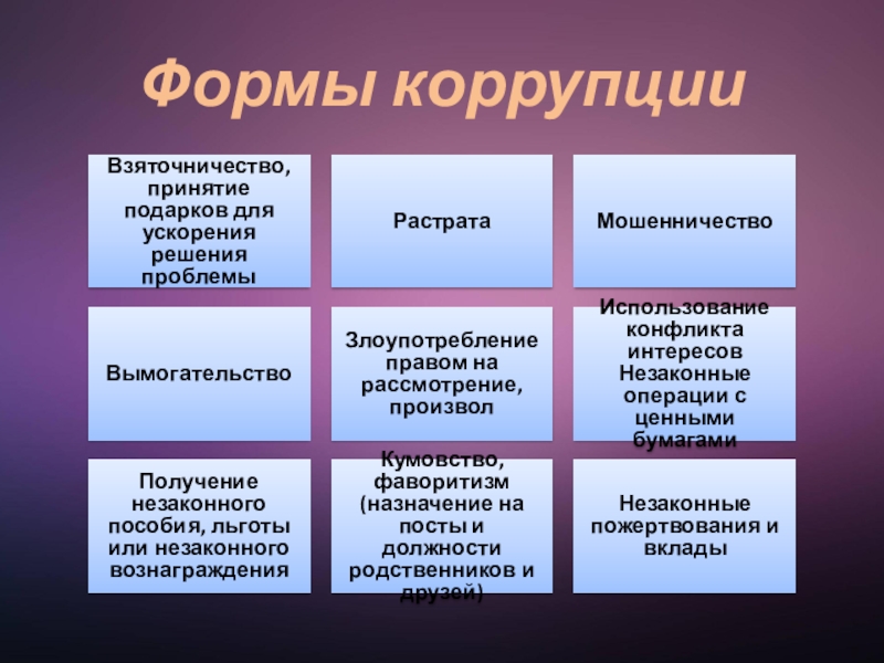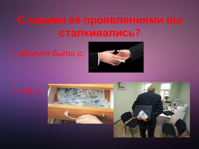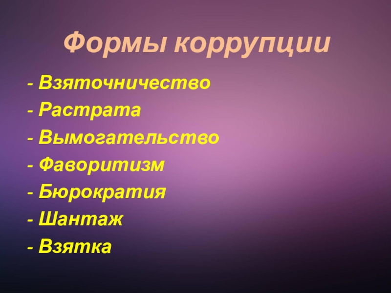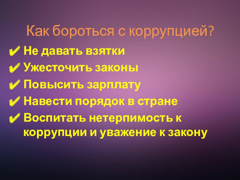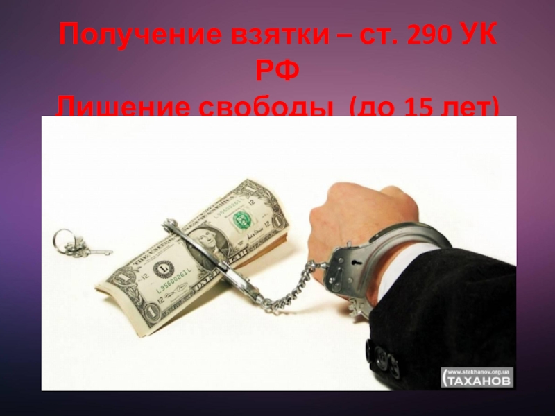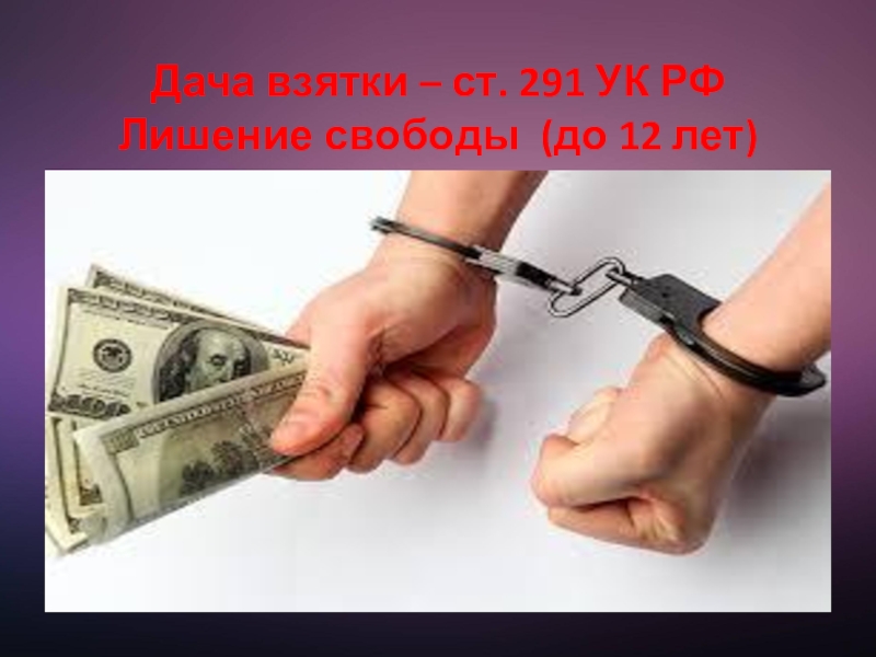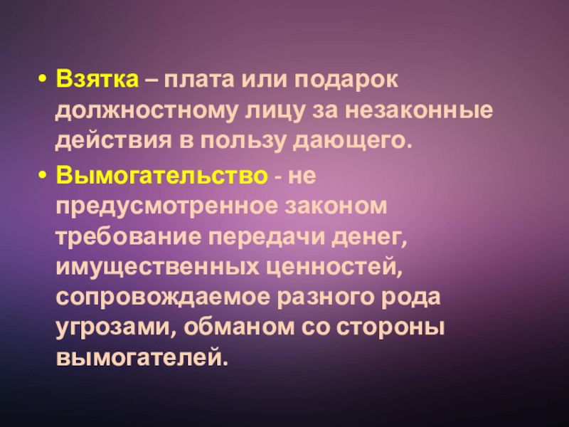Взятка – плата или подарок должностному лицу за незаконные действия в