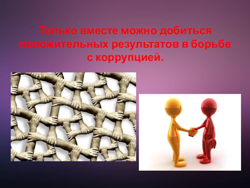 Слайд 43Только вместе можно добиться положительных результатов в борьбе с коррупцией.
