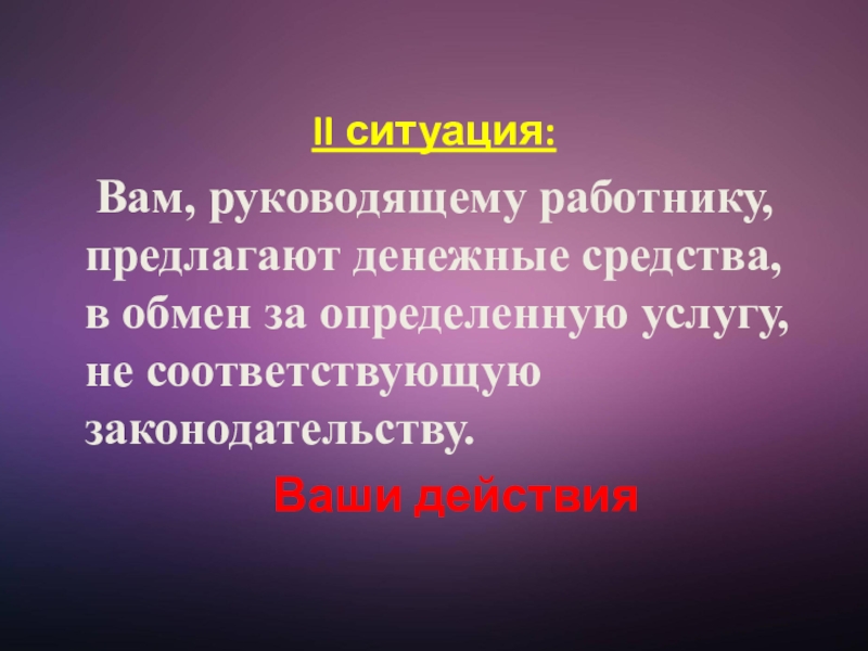 Вам, руководящему работнику, предлагают денежные средства, в обмен за