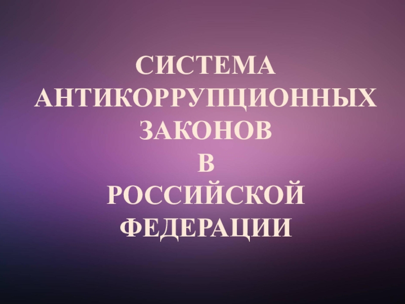 Слайд 1СИСТЕМА АНТИКОРРУПЦИОННЫХ ЗАКОНОВ