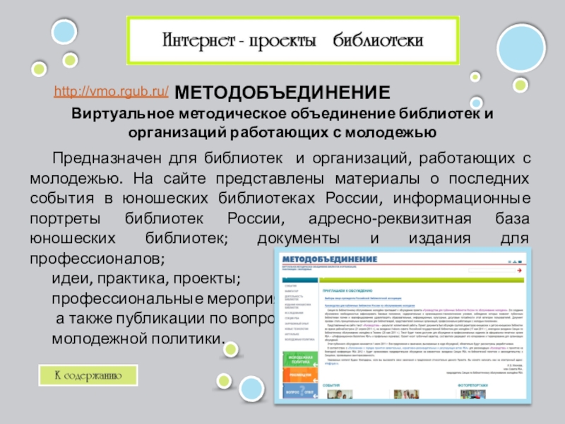 Виртуальное методическое объединение библиотек и организаций работающих с молодежью
