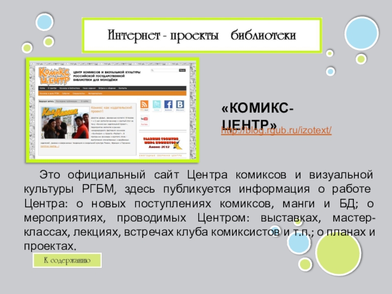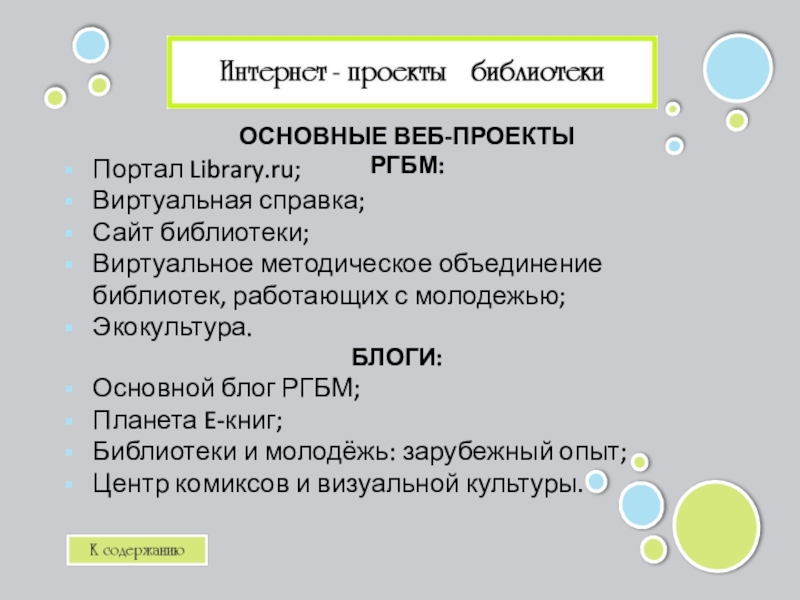 ОСНОВНЫЕ ВЕБ-ПРОЕКТЫ РГБМ: