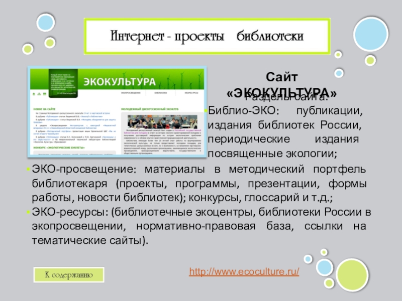 Библио-ЭКО: публикации, издания библиотек России, периодические издания посвященные экологии;