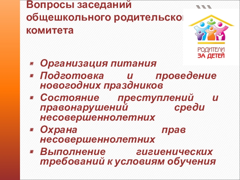 Тематика совместных заседаний школьного Управляющего Совета и родительского комитета