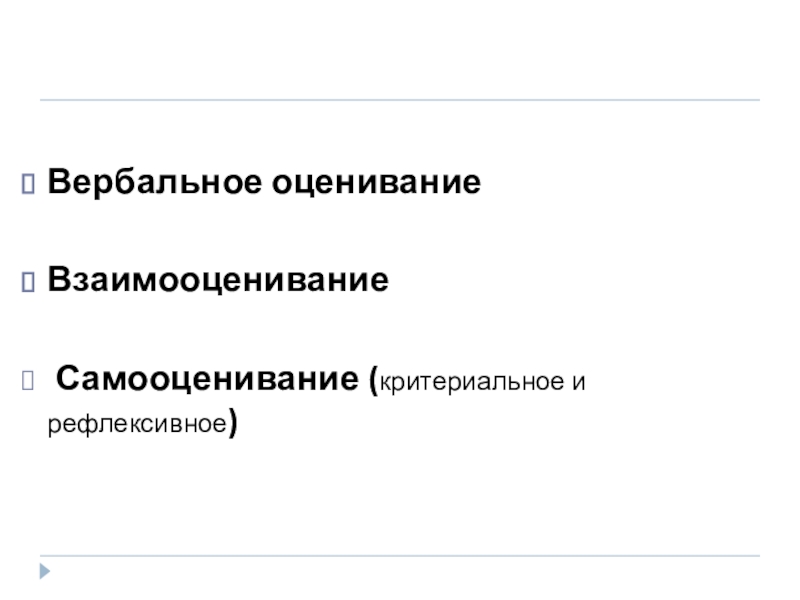 Вербальное оцениваниеВзаимооценивание Самооценивание (критериальное и рефлексивное)