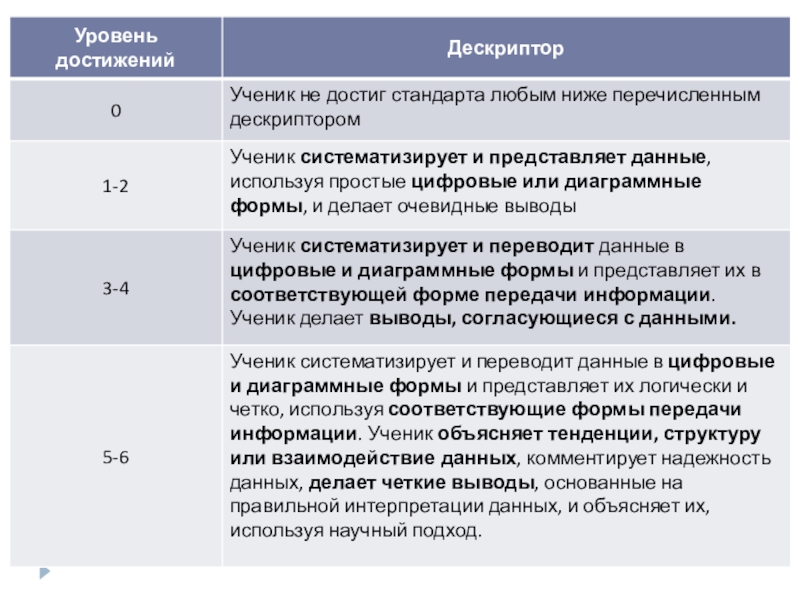 Критериальное оценивание A – один мирB – коммуникацияC – научные знания и концепцияD – научные исследованияE – обработка данныхF – демонстрация эксперимента Максимальное количество баллов по каждому критерию – 6.