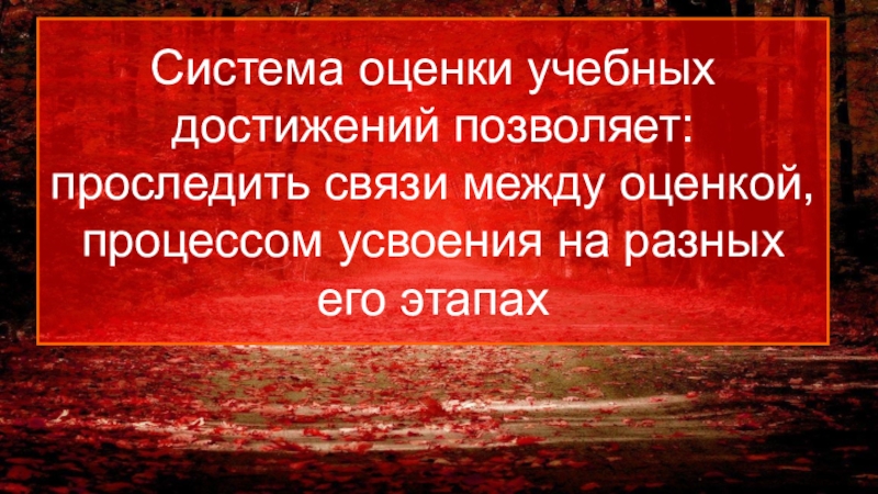 Система оценки учебных достижений позволяет: проследить связи между оценкой, процессом усвоения на разных его этапах