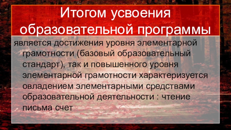 является достижения уровня элементарной грамотности (базовый образовательный стандарт),