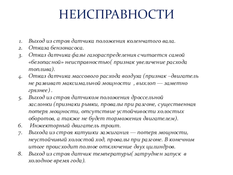 Выход из строя датчиком положения дроссельной заслонки (признаки рывки, провалы при разгоне, существенная потеря мощности, отсутствие устойчивости холостых оборотов, а также не будет торможения двигателем).