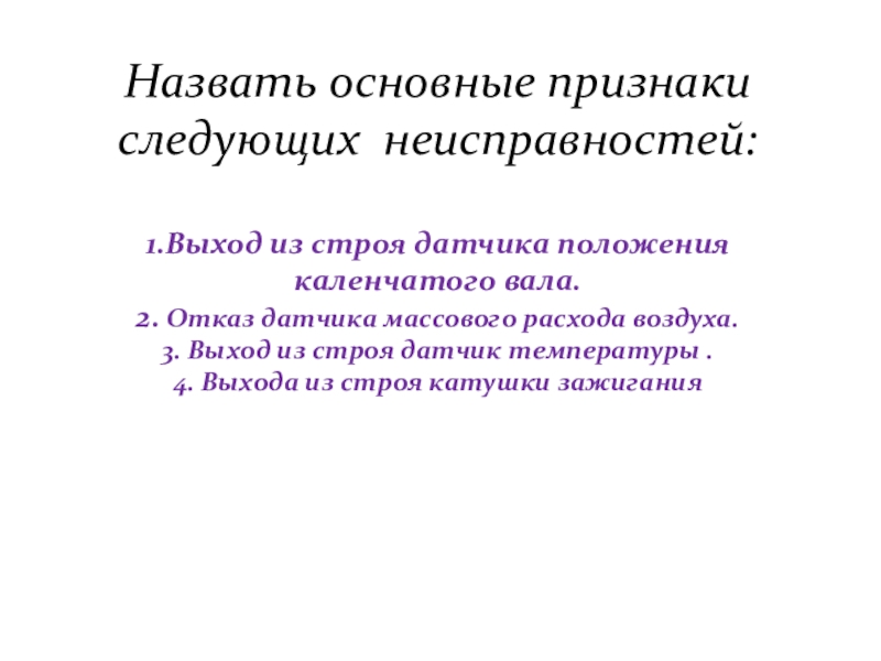 Отказ датчика массового расхода воздуха (признак –двигатель не развиват максимальной мощности , выхлоп — заметно грязнее) .