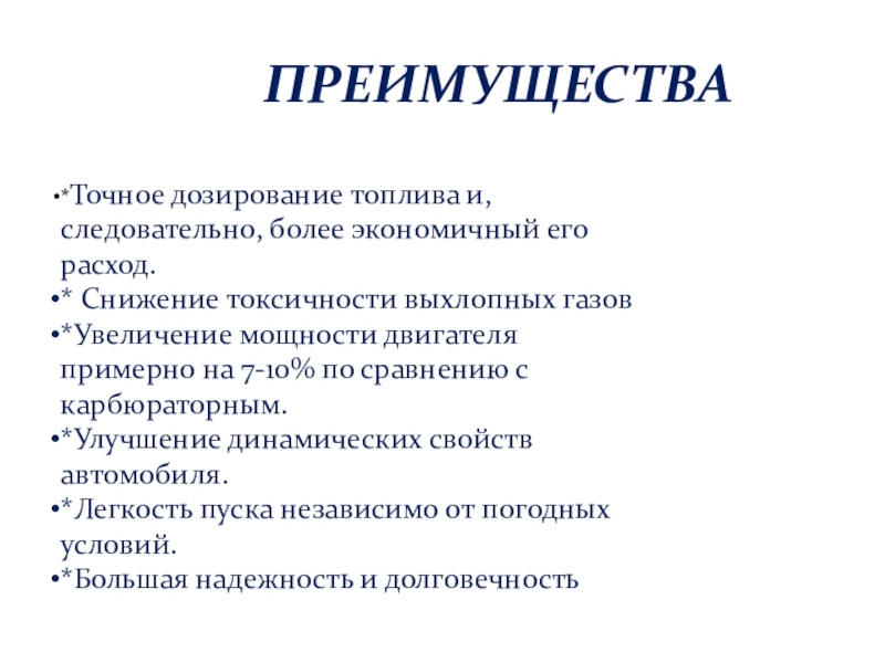 *Увеличение мощности двигателя примерно на 7-10% по сравнению с карбюраторным.