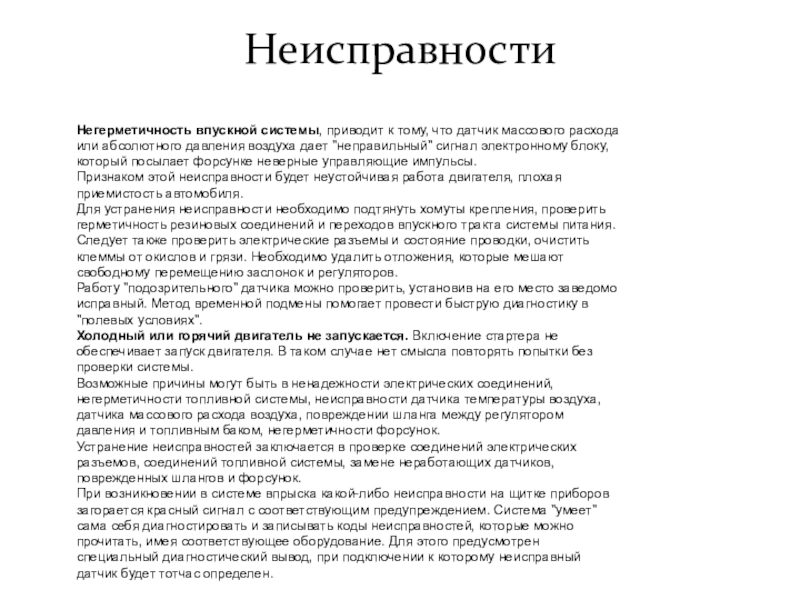 Негерметичность впускной системы, приводит к тому, что датчик массового расхода или
