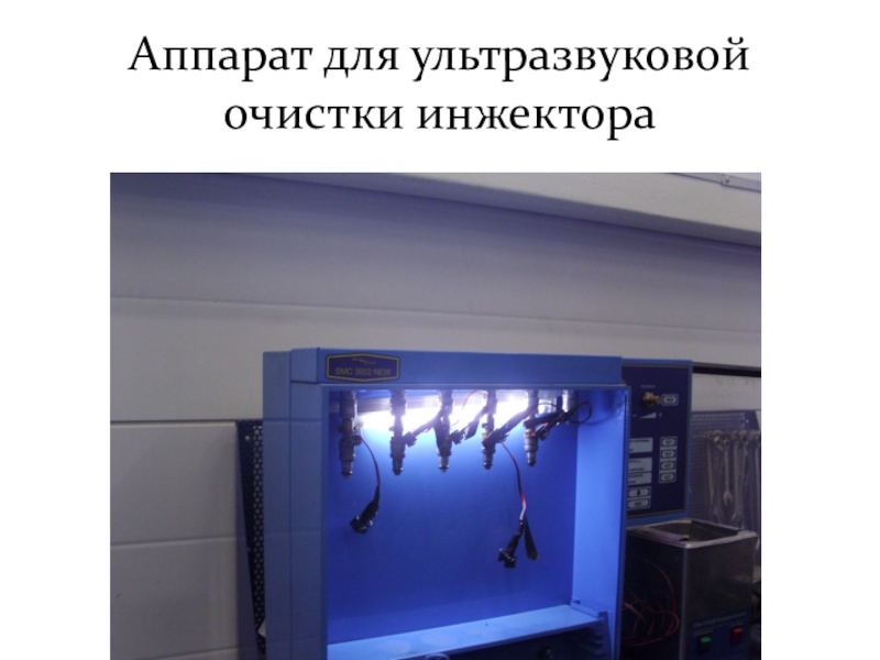 Слайд 19Аппарат для ультразвуковой очистки инжектора