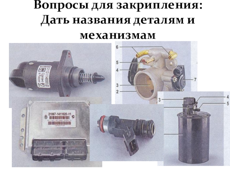 Слайд 22Вопросы для закрипления: Дать названия деталям и механизмам