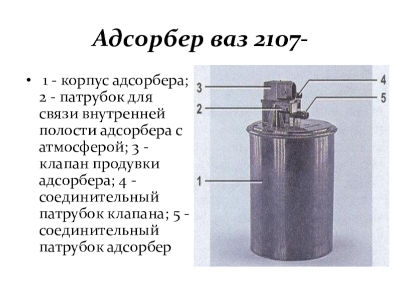 связи внутренней полости адсорбера с атмосферой; 3 - клапан продувки адсорбера; 4 - соединительный патрубок клапана; 5 - соединительный патрубок адсорбер