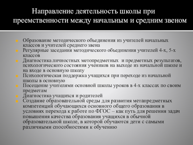 Образование методического объединения из учителей начальных классов и учителей среднего звена