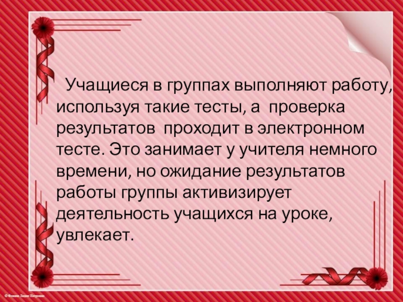 Учащиеся в группах выполняют работу, используя такие тесты,