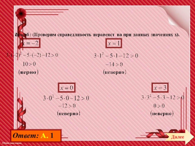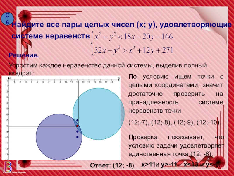 Проверка показывает, что условию задачи удовлетворяет единственная точка (12; -8).