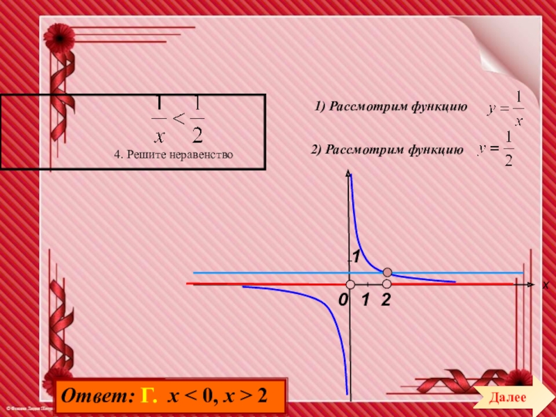И сжатый в два раза «прямой угол», лучи которого направлены вверх и двигающийся вдоль оси абсцисс в зависимости от параметра а.