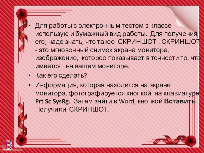 Слайд 8Для работы с электронным тестом в классе использую и бумажный вид