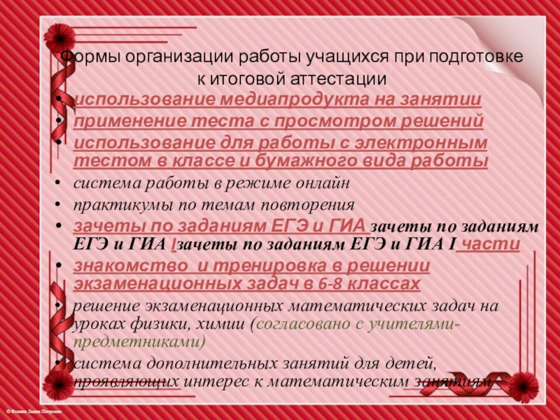 Слайд 4Формы организации работы учащихся при подготовке к итоговой аттестации