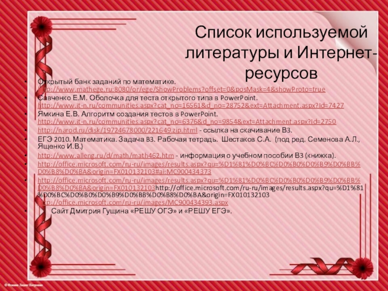Слайд 70Список используемой литературы и Интернет-ресурсов