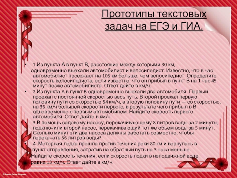 Слайд 68Прототипы текстовых задач на ЕГЭ и ГИА.
