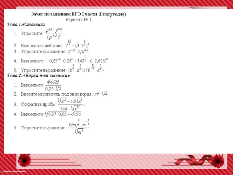 зачеты по заданиям ЕГЭ и ГИА зачеты по заданиям ЕГЭ и ГИА Iзачеты по заданиям ЕГЭ и ГИА I части