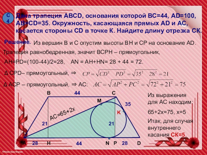 ТA=AS=100+(35-x)=135-x, с другой стороны,