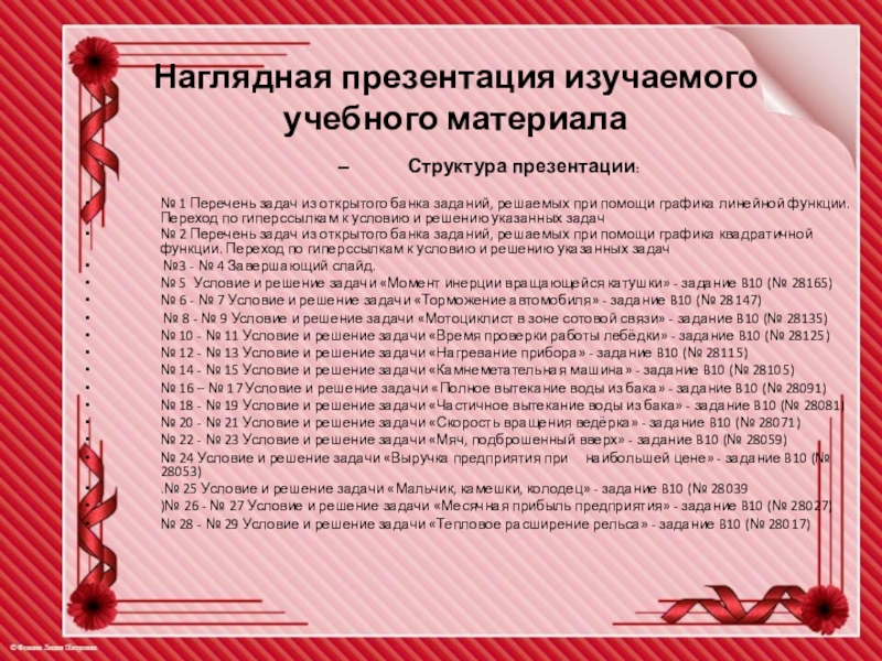 № 2 Перечень задач из открытого банка заданий, решаемых при помощи графика квадратичной функции. Переход по гиперссылкам к условию и решению указанных задач