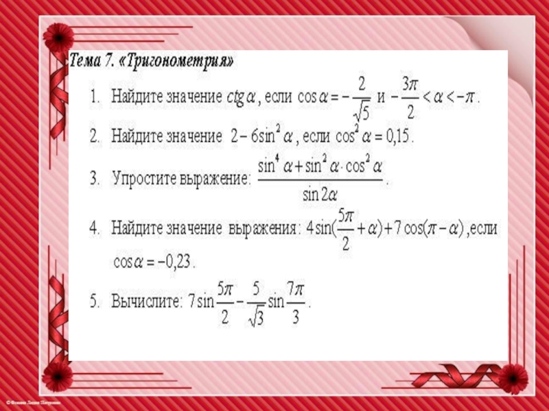 «Нахождение значений тригонометрических функций острых углов прямоугольного треугольника по одной из них»,