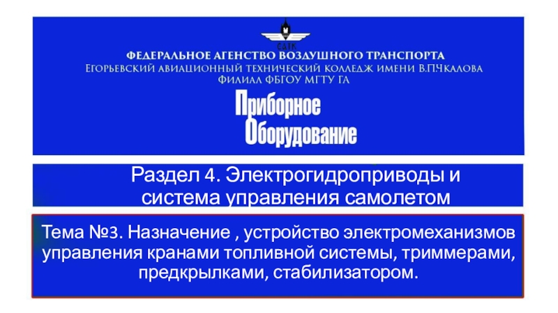 электромеханизмов управления кранами топливной системы, триммерами, предкрылками, стабилизатором.