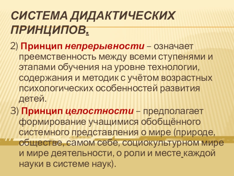 2) Принцип непрерывности – означает преемственность между всеми ступенями