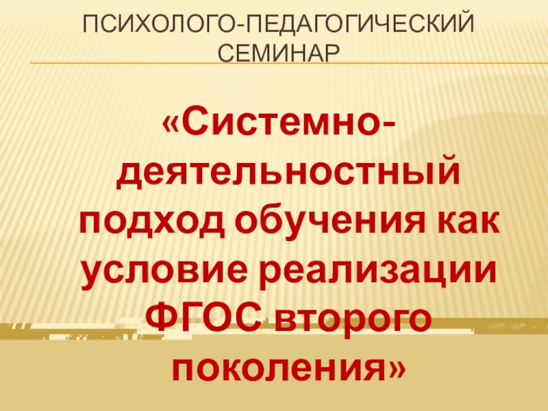 Слайд 2СИСТЕМНО-ДЕЯТЕЛЬНОСТНЫЙ ПОДХОД ОБУЧЕНИЯ КАК УСЛОВИЕ РЕАЛИЗАЦИИ ФГОС