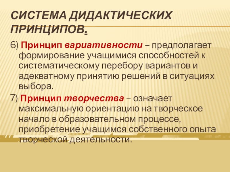 6) Принцип вариативности – предполагает формирование учащимися способностей к