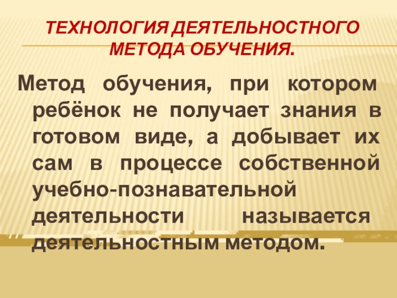 знания в готовом виде, а добывает их сам в процессе собственной учебно-познавательной деятельности называется деятельностным методом.