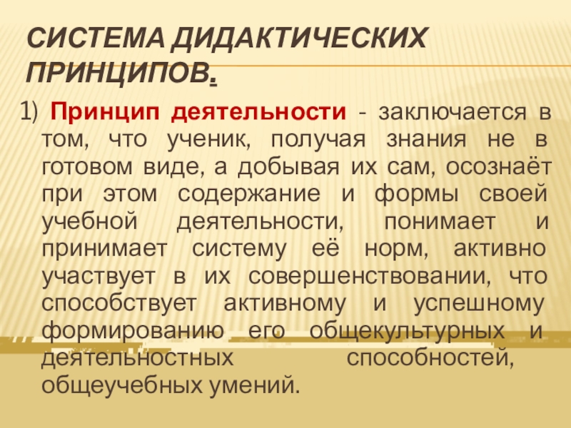 7) Принцип творчества – означает максимальную ориентацию на творческое начало в образовательном процессе, приобретение учащимся собственного опыта творческой деятельности.