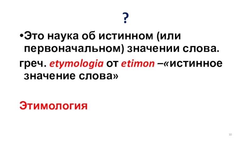 Это наука об истинном (или первоначальном) значении слова.