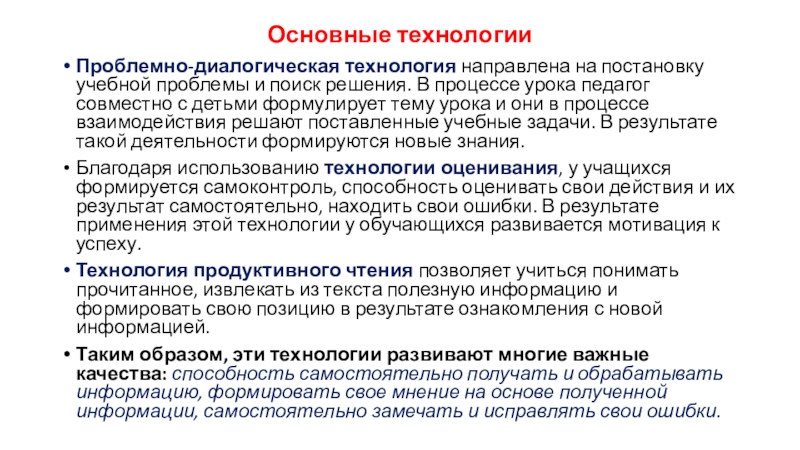 Проблемно-диалогическая технология направлена на постановку учебной проблемы и поиск решения.