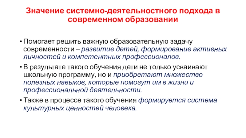 Слайд 7Значение системно-деятельностного подхода в современном образовании