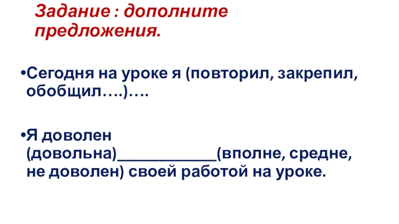 Слайд 15Задание : дополните предложения.