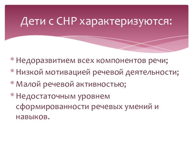 Дети с СНР характеризуются: