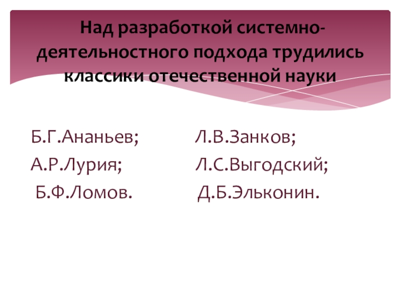 Над разработкой системно-деятельностного подхода трудились классики отечественной науки