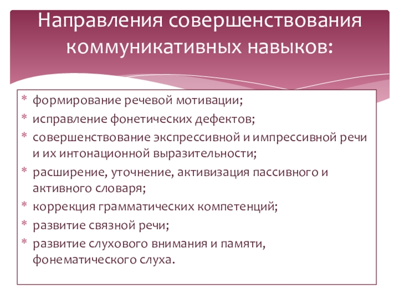 Направления совершенствования коммуникативных навыков: