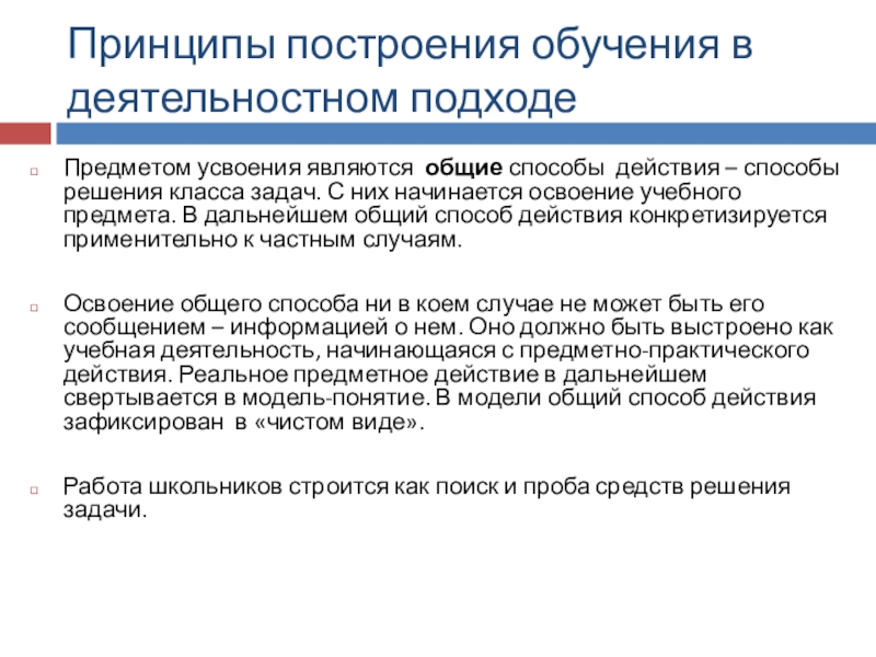 Слайд 15Принципы построения обучения в деятельностном подходе