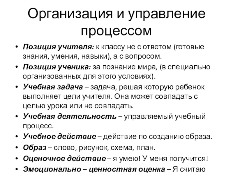 Позиция ученика: за познание мира, (в специально организованных для этого условиях).