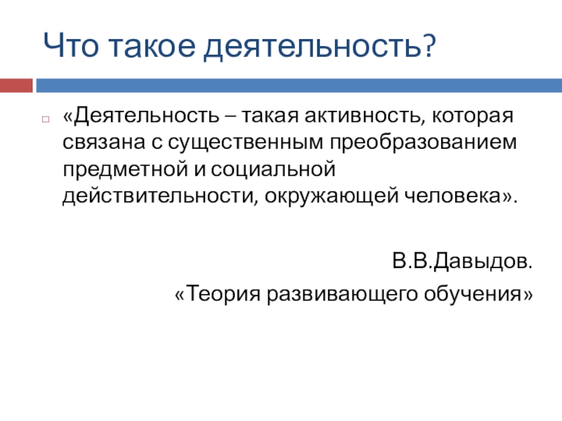 «Деятельность – такая активность, которая связана с существенным преобразованием